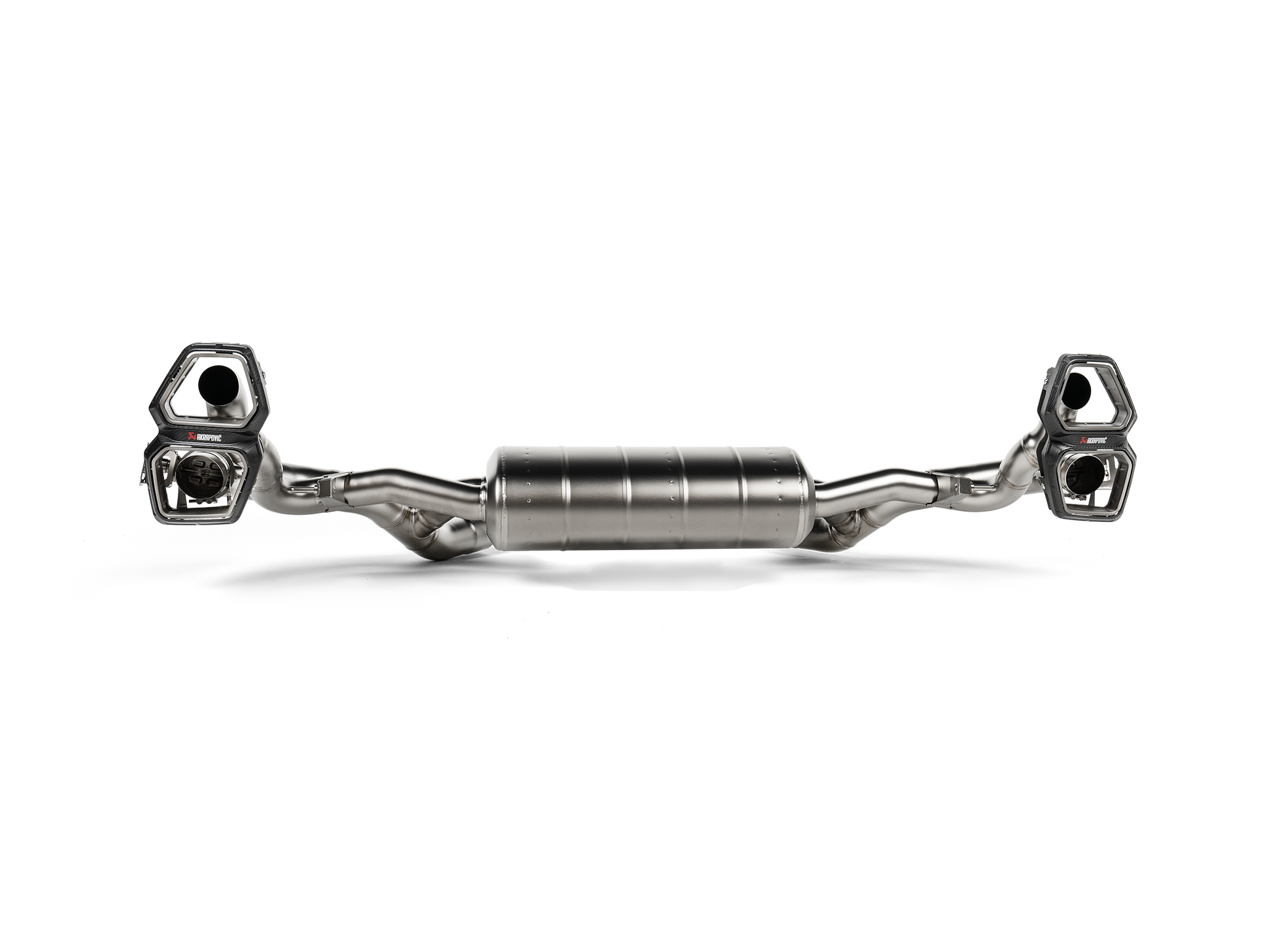 This product is constructed from high-grade titanium, with integrated acoustic reflectors, designed to reflect the external sound toward the cabin and enhance the overall acoustic experience of the Akrapovič exhaust. Two integrated exhaust valves, each on one side of the muffler and operated by the Akrapovič control kit, tailor the gas flow for a rewarding sound experience. The sound has a linear flow based on the rpm and engine load, offering a smooth and harmonic tone at lower revs and rising to a distinctive V8 rumble in the mid-range before reaching a crescendo of high-frequency sporty sound when the revs rise higher.