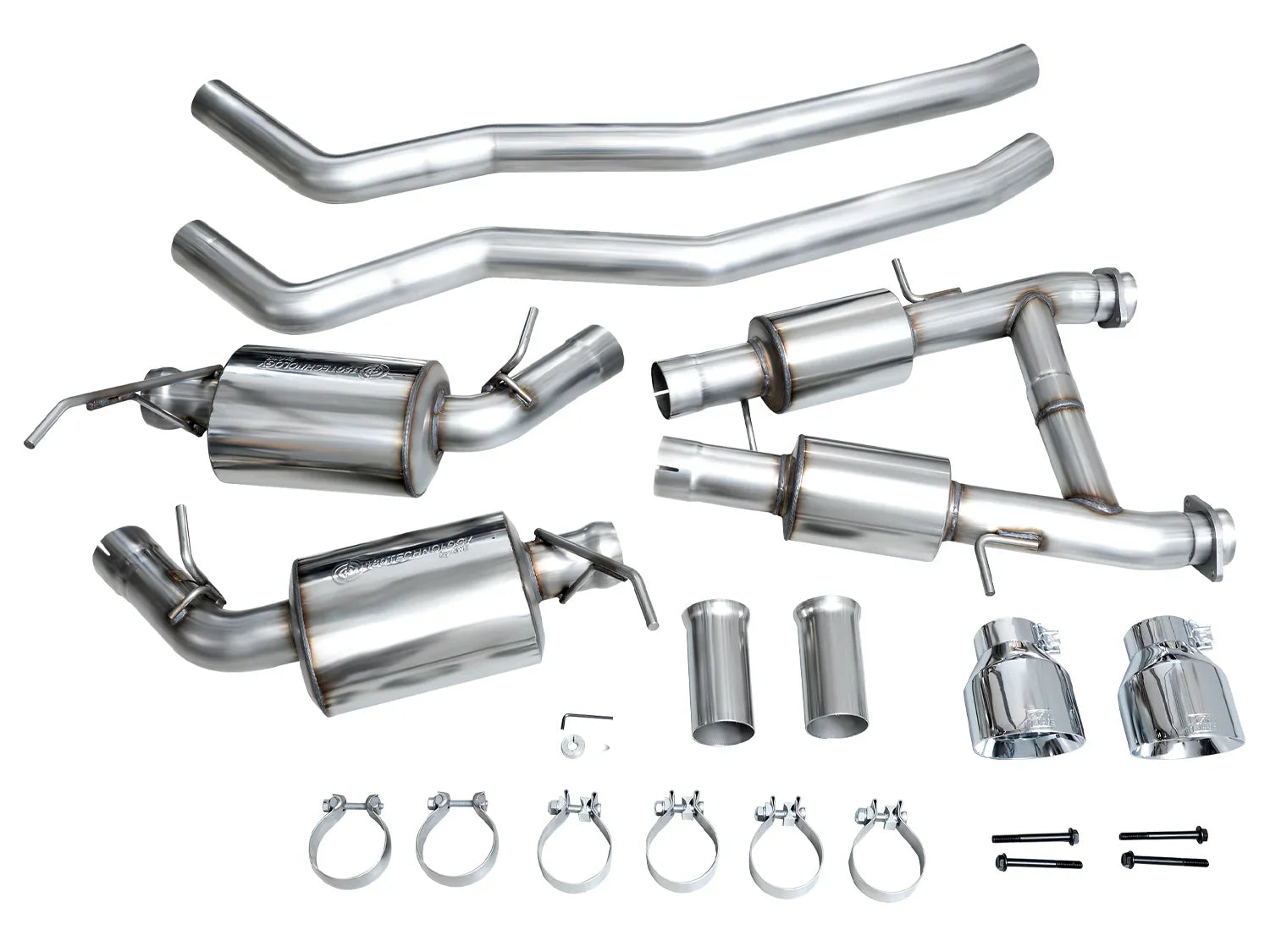 The Touring Edition is a full 3” straight-through stainless steel catback configuration capable of delivering optimal power while remaining drone-free throughout the entire rev range. Featuring a precision-engineered resonated H-pipe and AWE’s patented drone-canceling solution, 180 Technology®, the Touring Edition delivers deep, rich exhaust notes that coax anyone in your lane to move out of the way.