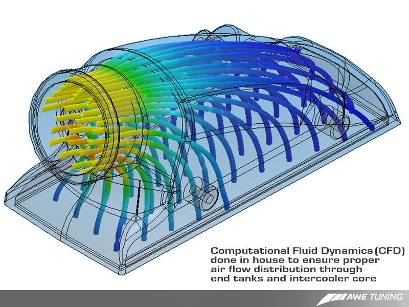 During development of AWE Tuning’s 750R Turbo Kit for the 997.2TT, we experienced excessively high intake air temperatures. Since an OEM option was not available, and our power goals were well north of 700hp, we undertook the task to construct a completely new intercooler system. As with all AWE Tuning Intercoolers, a cast end tank was designed in house using sophisticated CAD (Computer Aided Design) and CFD (Computational Fluid Dynamics) software. Once the end tanks were cast by the foundry, they were then machined on our CNC mill, welded to specially designed cores, and then power tested and refined on our chassis dynamometer.