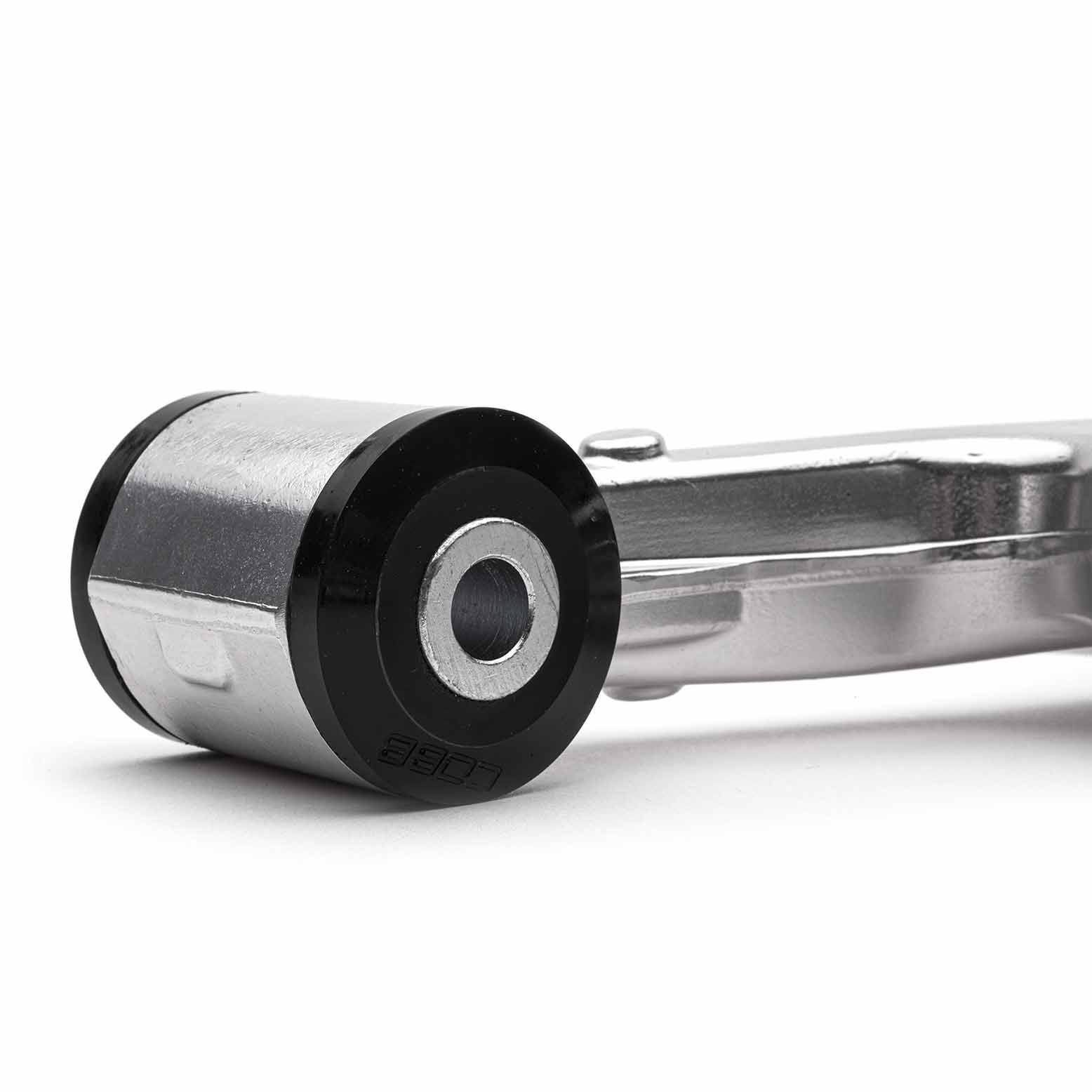 The COBB Subaru Alloy Front Lower Control Arm, Offset Caster (or STD Alignment) will increase the handling of your WRX to better than that of the STI. This is accomplished with by using light-weight alloy construction which yields less unsprung weight. Stiffer bushings also provide better tire contact patch control with minimal NVH and maximum service life. The difference between this unit and the standard caster LCA is the offset provided by the rear bushing assemblies. The center of the bushing assembly is moved inboard (effective to 3 o’clock on the driver’s side and 9 o’clock on the passenger’s side when viewed from above). Doing this moves the rearward mounting position of the arm outboard, in turn sweeping the arm forward slightly which relocates the knuckle and base of the front strut forward introducing additional positive caster (~0.5° per side).