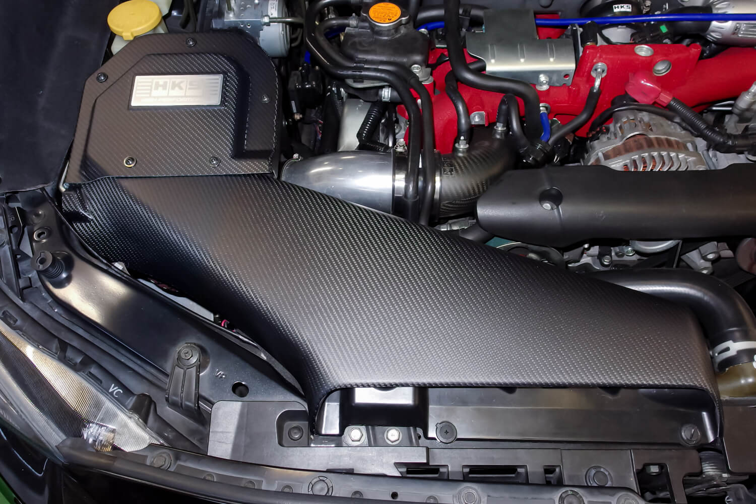 HKS has released the Cold Air Intake Kit for the 2015+ Subaru WRX STI! This kit is designed as an upgrade item exclusively for racing suction. By completely separating the engine compartment from the air filter, heat from the engine bay is blocked out and cold fresh air is continuously induced for stable performance. The filter box and duct covers are made of carbon fiber, manufactured by the vacuum infusion method. The surface of the carbon cloth is a 3K twill weave to dress up the engine bay, retaining an OEM+ look. The HKS Cold Air Intake Kit supplies the coolest air possible to your STI's turbocharger, greatly improving performance while remaining efficient.