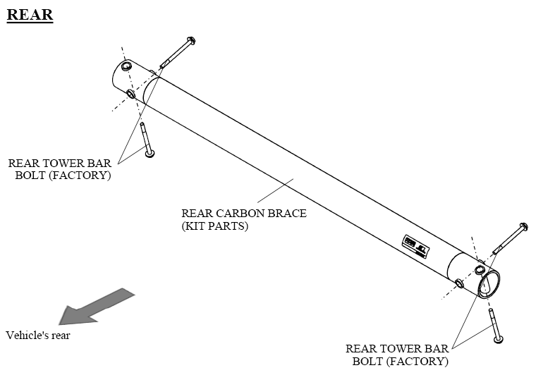 - The replacement type strut brace from the factory strut bar. (Front: Steel made, Rear: Aluminum made)