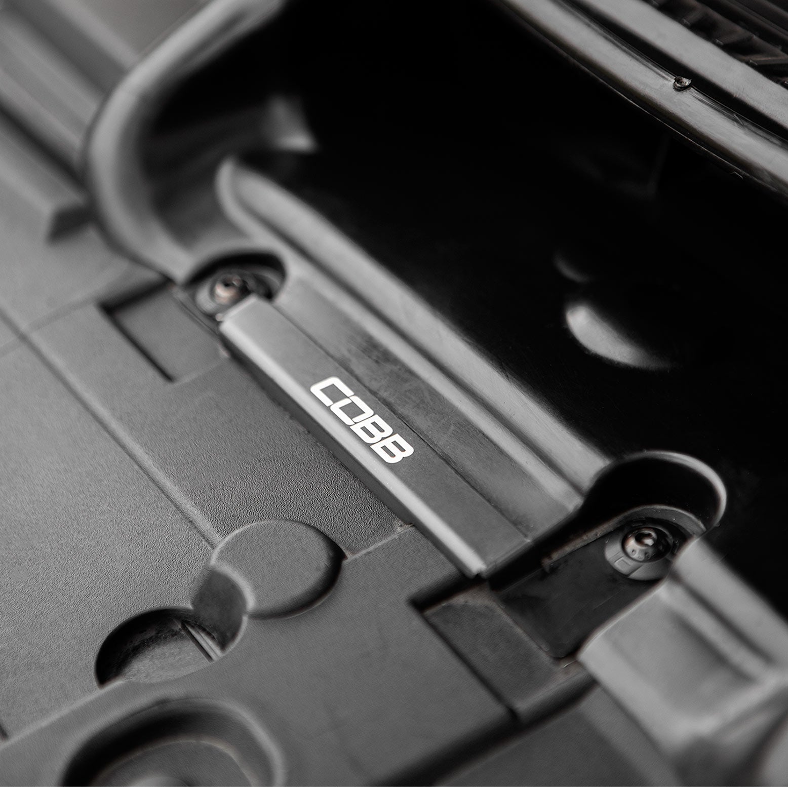 Introducing the COBB Intake Bracket, known internally as the "Torq-Snork". This brace uses two pieces to sandwich the soft plastic snorkel to the core support, replacing the fragile plastic clips with hardware and preventing all deformation under load. All you need is a flathead screwdriver to pop the old clips out and the provided Allen key to secure the hardware.