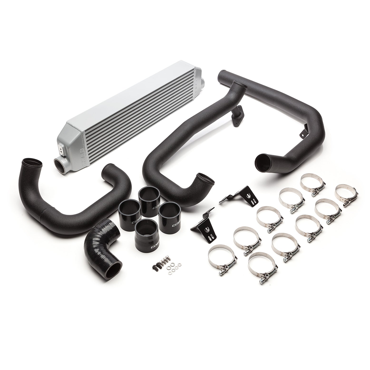 The 24"x6.5"x3.5" aluminum core with cast-aluminum end-tanks is extremely efficient while creating as little restriction as possible. 2.5" mandrel-bent aluminum tubing carries pressurized air to and from the intercooler and feature formed ends to eliminate hose blow-off. Five-ply silicone couplers and stainless steel t-bolt clamps are used throughout to further ensure reliable, leak-free joins. The process to ensure perfect fitment of the COBB Gen2 MS3 FMIC kit was just as rigorous as ensuring its high performance. This kit fits with the stock crash-bar in place, retaining factory passenger safety. The kit bolts into place with no cutting of the front bumper cover and only simple and straightforward trimming of the front undertray is required. Custom brackets allow perfect fitment in the tight confines behind the front bumper cover. The appearance of the COBB Gen2 MS3 FMIC is second to none, once again due to attention to detail. The intercooler core is visually striking, positioned dead-center in the bumper-cover opening, featuring a silver coating and casted COBB logos in the end tanks. The intercooler piping is powdercoated in a wrinkle black and includes integrated brackets with the COBB "C" logo. The five-ply silicone couplers also bear the COBB logo and are available in blue or black to best match your existing engine bay modifications. The COBB Gen2 MS3 FMIC is supported with Accessport Off-The-Shelf maps for intercoolers and a variety of other power-producing modifications. Simply install the COBB Gen2 MS3 FMIC kit, select an appropriate map from the extensive Mazda Accessport Off-The-Shelf Map Database, flash the ECU and go experience heat-soak-free power. Over and over and over! The COBB Gen2 MAZDASPEED3 FMIC is the ultimate combination of performance, quality and attention to detail.