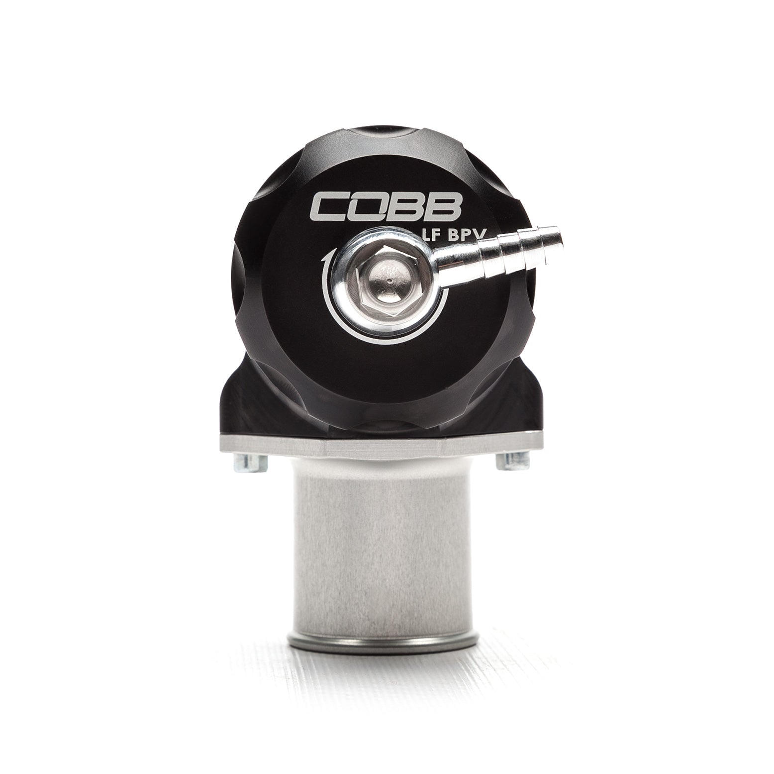 The COBB LF BPV is a compact and lightweight by-pass valve that is capable of holding very high boost pressure without leaking. Its updated design reduces control volume by 30% allowing for extremely fast venting of boost when actuated. Innovative engineering and precision manufacturing result in a compact package able to fit in the confines of a tight engine bay. Due to the low weight of the components, the moving parts in the LF BPV have less inertia and can respond faster than heavier components in other bypass valves. This updated design uses a Banjo-fitting vacuum port which provides 360 degree adjustability of hose routing. This results in a simpler install and less potential leak points than the NPT ports. This new design also includes a piston o-ring seal that is twice the diameter of the old design allowing more seal compression and reduced wear. Adjustability of the spring seat is no longer needed due to the updated spring and seal design which provides a 60% increase in clamping force at peak boost while maintaining similar operation at idle and transient loads.