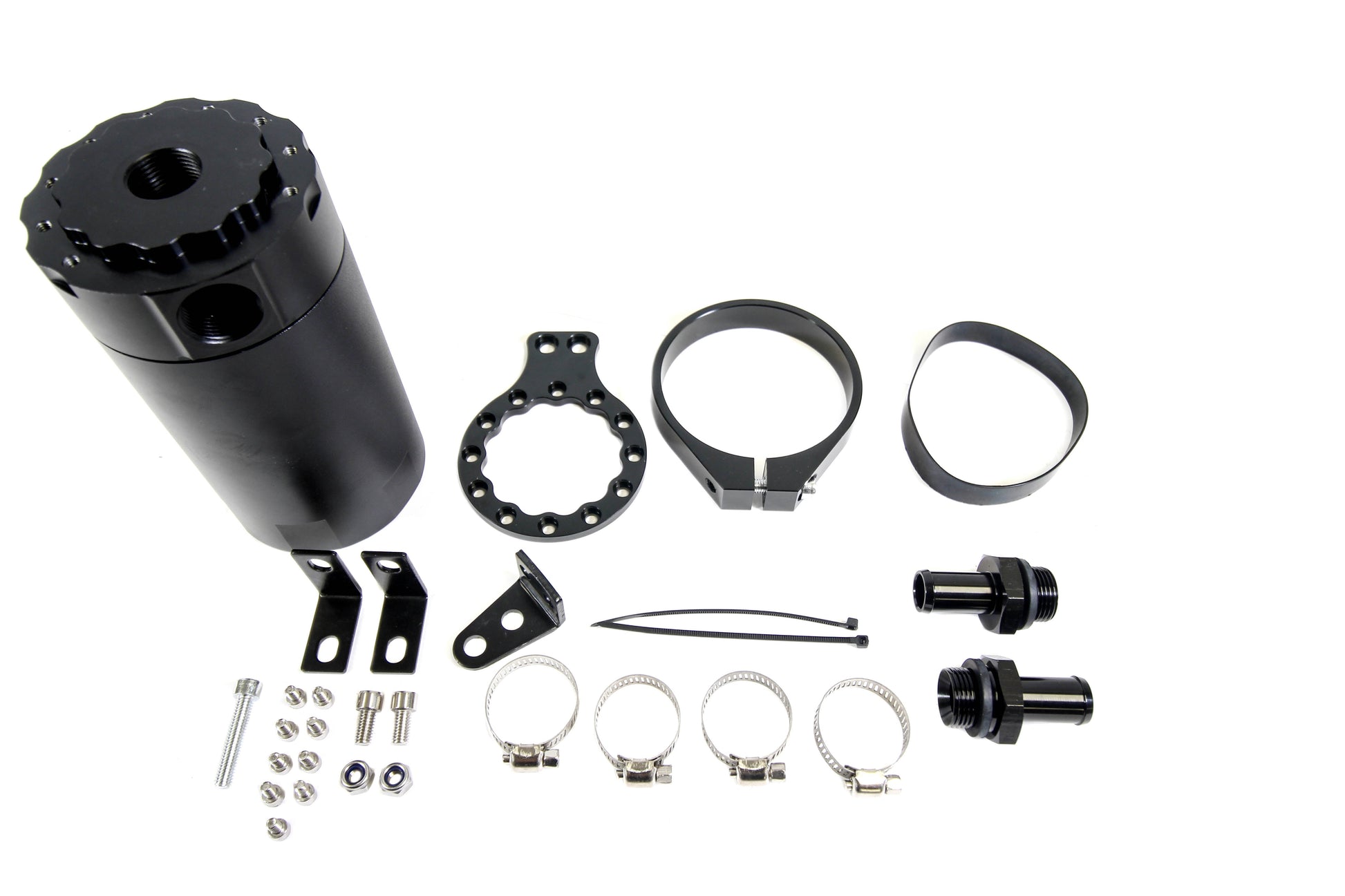 This PLM baffled oil catch can is designed to collect oil and blow by gases from PCV valve or engine valve cover going to the intake system that causes carbon and sludge build-up.