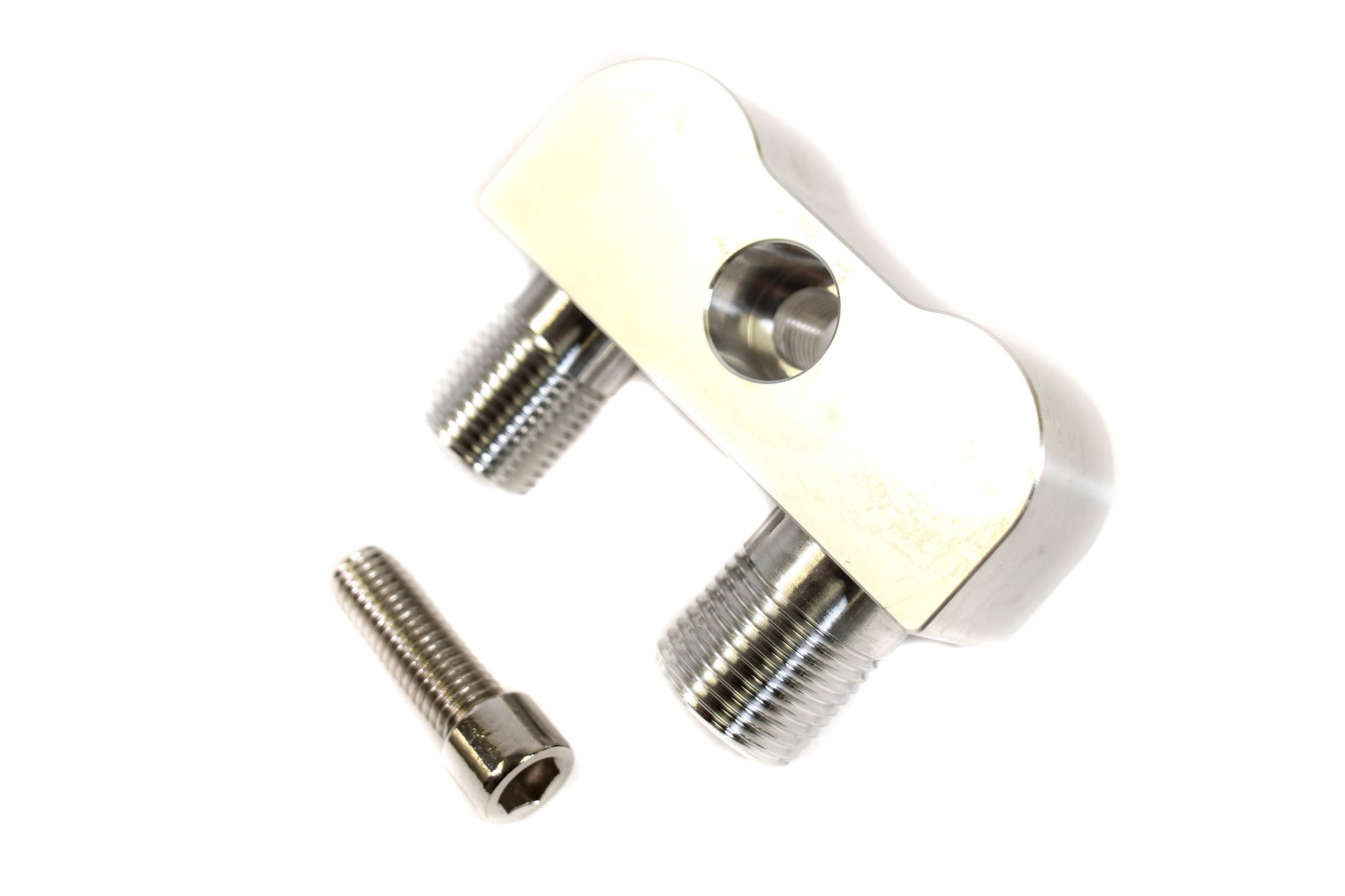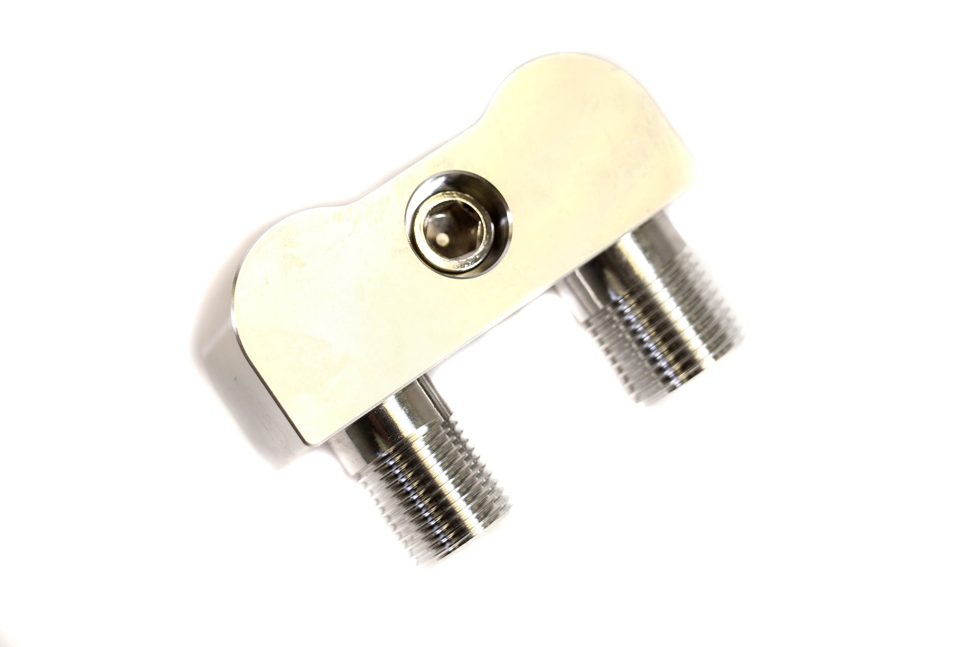 This LSX LS1 AC compressor line adapter is used to convert a stock compressor to fit aftermarket hoses. The adapter is for standard #8 discharge and #10 suction fittings.