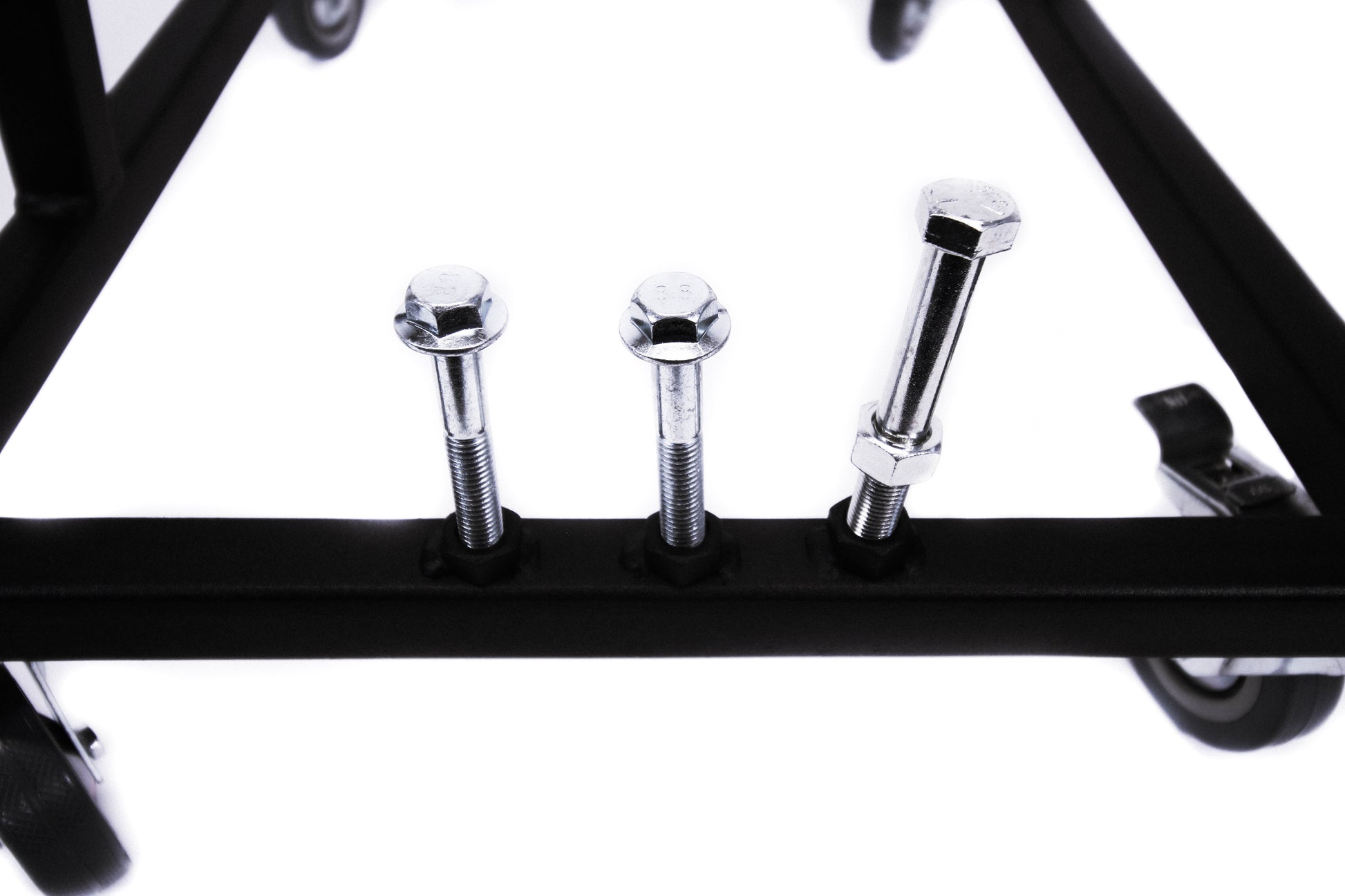 This newer version now fits both Honda K24 and K20! Powder coated matte black, super clean look, sturdy locking wheels, high strength steel are some of the key features this new model offers.