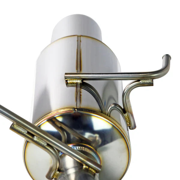 Aggressive appearance for those who want to stand out. The outward angled R1 mufflers with 4" slant cut tips make a bold statement. The straight through 2.5" ID muffler canisters do a great job to suppress sound, and provide a deep tone. Being that this is an axleback kit, it bolts directly to the OEM midpipe, or can be used with one of our midpipe kits to create a full catback system. 304 Stainless Steel construction, polished muffler canisters, and fully TIG welded.