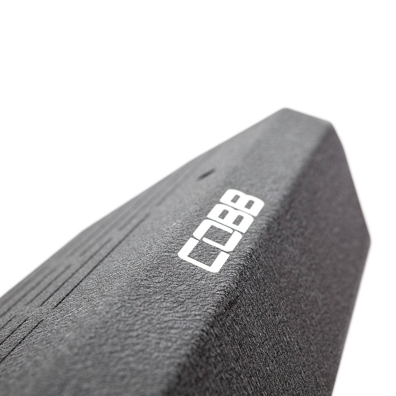 This alternator shroud is made from 5052-H32 Aluminum, powdercoated wrinkle black, and features a laser etched COBB logo.
