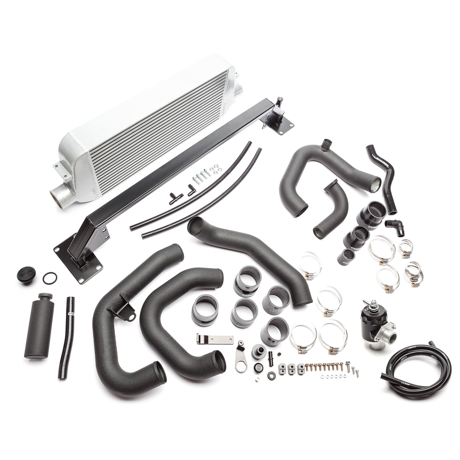 Remove the overworked factory intercooler from your 2015+ WRX in favor of the Silver COBB Front Mount Intercooler Kit. Featuring a massive 24" x 11" x 4" Bar and Plate core and 2.5" piping. The intercooler core is finished in a silver heat-dissipating coating. The piping is mandrel bent aluminum and finished in wrinkle black powder coat to keep the engine bay tidy. This FMIC is designed to work with the COBB Big SF Intake and Airbox combination. Compatibility with other intake kits cannot be confirmed. A feature unique to this intercooler kit is the integrated mounting provision for a factory tow hook or license plate relocation bracket. No cutting to the bumper cover is required when installing this FMIC Kit. Factory gussets remain in place.