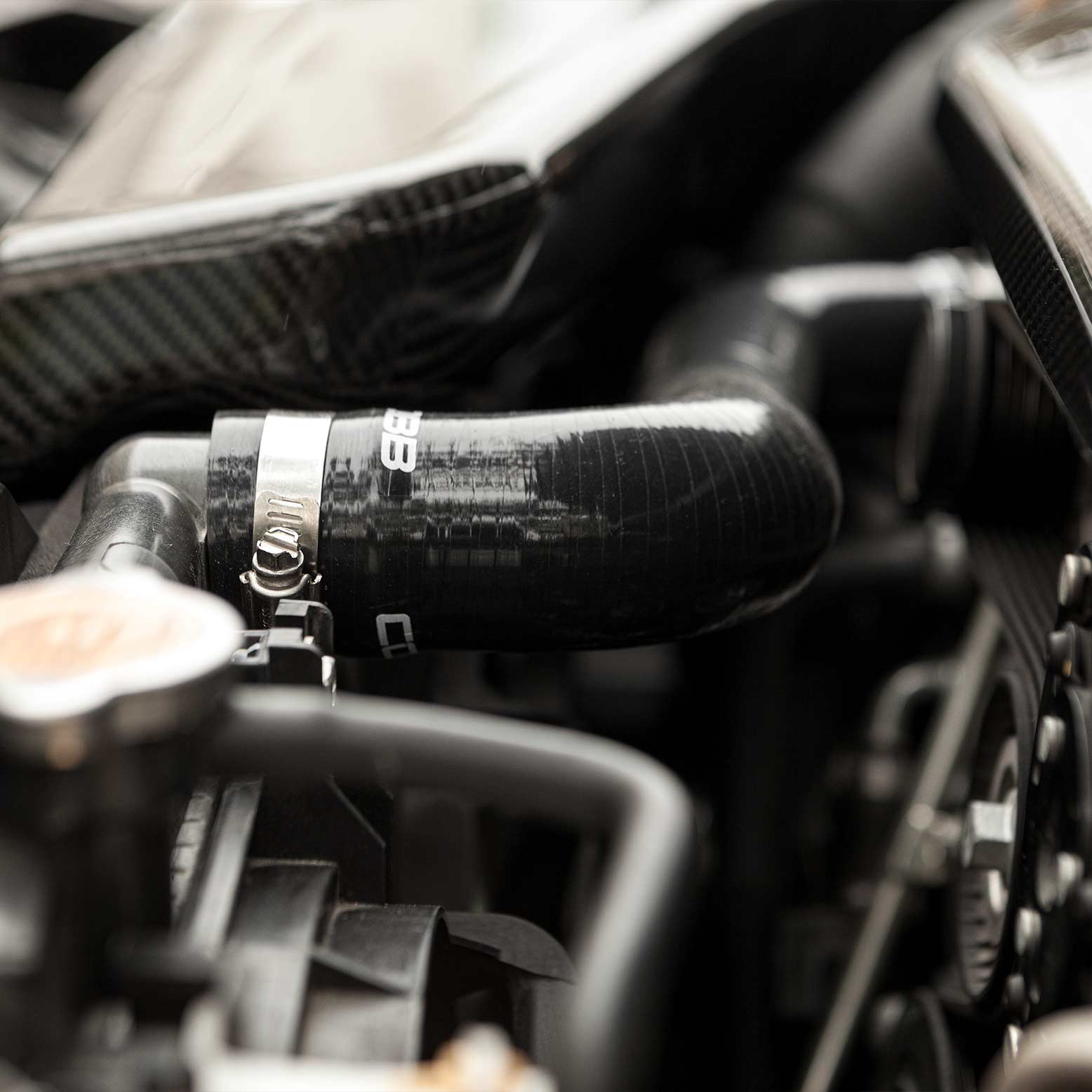 Reinforced silicone hoses have a higher temperature operating range, are more resistant to chemical reactions, and maintain their flexibility through a longer lifespan than factory rubber hoses. They happen to look much better, too.