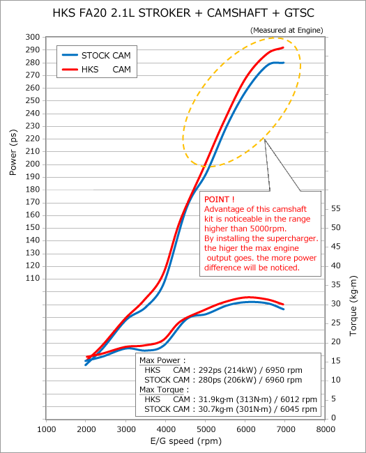 PARTS SPECIFICATIONS E/G HKS 2.1L KIT Restrictor φ41mm S/C HKS GTS7040L I/C HKS S/C KIT I/J HKS Fuel UPGRADE KIT CPU HKS Flash Editor + F-CON ※Test data were measured in HKS' engine bench.